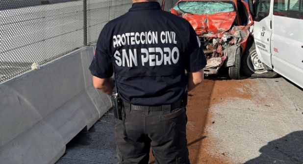 Al sitio acudieron unidades de Protección Civil de San Pedro y Nuevo León, donde los elementos revisaron el estado de las personas implicadas en el hecho y encontraron prensado y sin signos vitales al conductor del auto Chevy compacto, sin determinar su identidad.