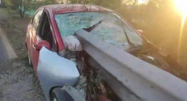 Este hecho ocurrió en la Autopista al Aeropuerto alrededor de las 6:00 de la mañana de este domingo, cuando el conductor del auto March rojo perdió el control del coche y terminó impactándose contra el metal que se incrustó en el cristal.