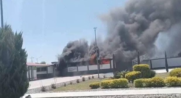 El fuego se originó en el área de almacén destinada al resguardo de vestuario y equipo táctico, ubicada en la colonia Alianza Real, específicamente en el cruce de las calles Antiguo Camino a San Miguel y Artículo 3.