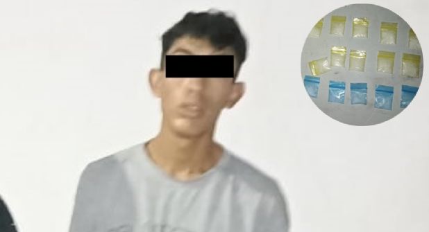 Tras la revisión, se le encontraron 16 bolsas con una sustancia sólida con las características de la droga tipo cristal, así como una bolsa en color negro con hierba verde similar a la mariguana y la cantidad de 110 pesos en efectivo.