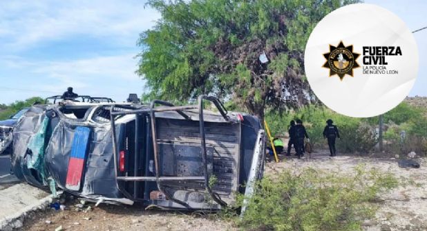 Eran aproximadamente las 8:20 horas de este martes cuando una patrulla de la Fuerza Civil sufrió una volcadura en el kilómetro 8 de la Carretera Doctor Arroyo-Linares, a la altura del paraje conocido como La Poza.