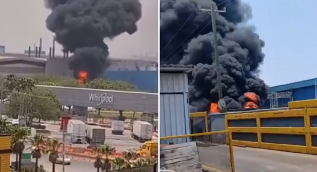 Apodaca. - Un incendio se registró en las instalaciones de una empresa Whirlpool, especializada en la fabricación de electrodomésticos, durante el mediodía de este viernes en el municipio de Apodaca con saldo de 100 personas evacuadas.
