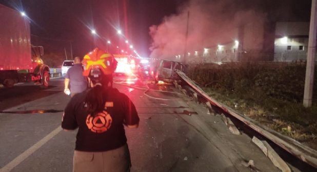 Paramédicos de la Cruz Roja y de Protección Civil de Apodaca brindaron atención a las víctimas y las trasladaron al Hospital de Zona, mientras que elementos de Bomberos controlaron el incendio que se desató tras la colisión.