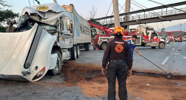 “En el lugar se coloca absorbente para los líquidos derramados, posteriormente se retiró la cabina y la primera caja, liberan do tres de los cuatro carriles, solo se queda la segunda caja en la parte baja del túnel que conecta con la universidad”, expusieron.