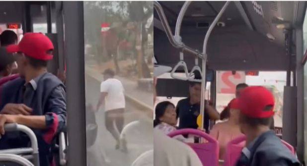 En el video se muestra que llega un momento en el que el conflicto sube de tono, ya que dos pasajeros comienzan a hacerse de palabras con el operador, el cual toma un extintor y baja del camión provocando a los usuarios involucrados en la discusión.