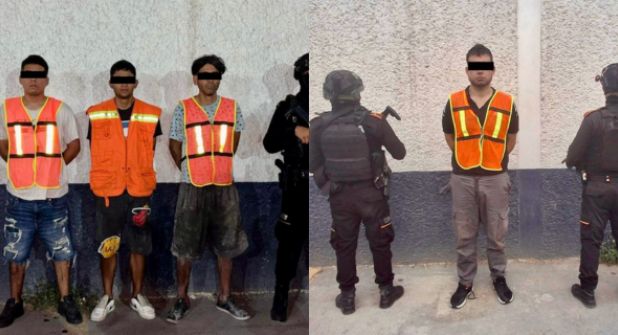 Al interceptarlos, los oficiales observaron que uno de ellos manipulaba lo que aparentaba ser un arma de fuego. Tras aplicar los protocolos de seguridad y una revisión, fueron asegurados Jorge “N”, de 25 años; Edson “N”, de 24, y Armando “N”, de 43.