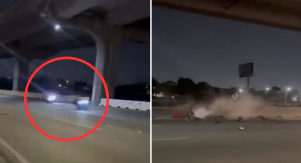 En el clip se puede apreciar cómo al menos cuatro motociclistas circulan a alta velocidad por la mencionada vía, cuando uno de ellos se impactó contra la barrera de concreto.