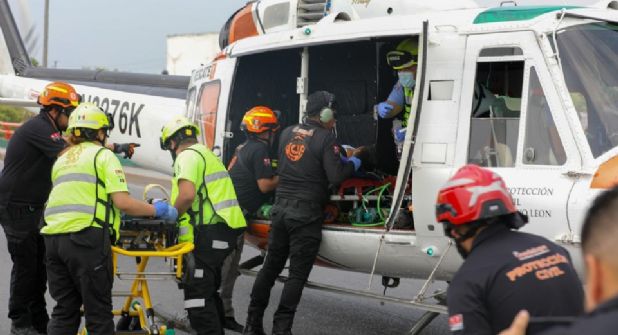 Hualahuises. – Elementos de Protección Civil de Nuevo León (PCNL) han implementado un operativo de traslado a dos menores de edad, mismos que se encuentran delicados de salud posterior al accidente vial registrado esta mañana de martes en kilómetro 169 de la Carretera Montemorelos-Hualahuises.