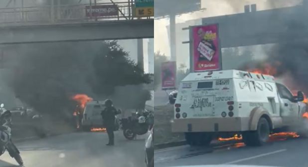 San Pedro.- Un camión de valores se incendio mientras circulaba sobre la avenida Lázaro Cárdenas, en el municipio de San Pedro Garza García.