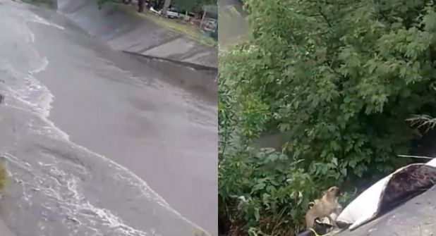 Guadalupe.- Un grupo de vecinos, entre los que se encontraba un menor de 13 años, ayudaron a rescatar a un perrito de caer al cause del arroyo La Talaverna, cuya corriente creció debido a las fuertes lluvias de este martes.