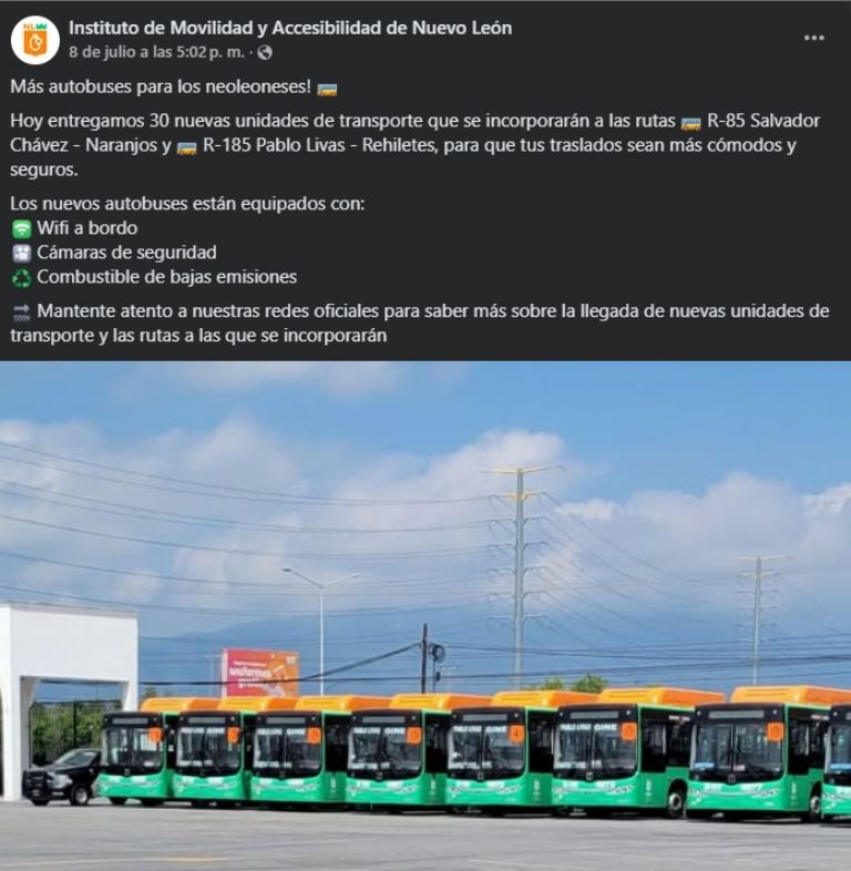 Fue el pasado 8 de julio cuando el gobernador Samuel García, encabezó un evento de entrega de 30 unidades nuevas: 20 para la ruta 85 y 10 para la ruta 185.