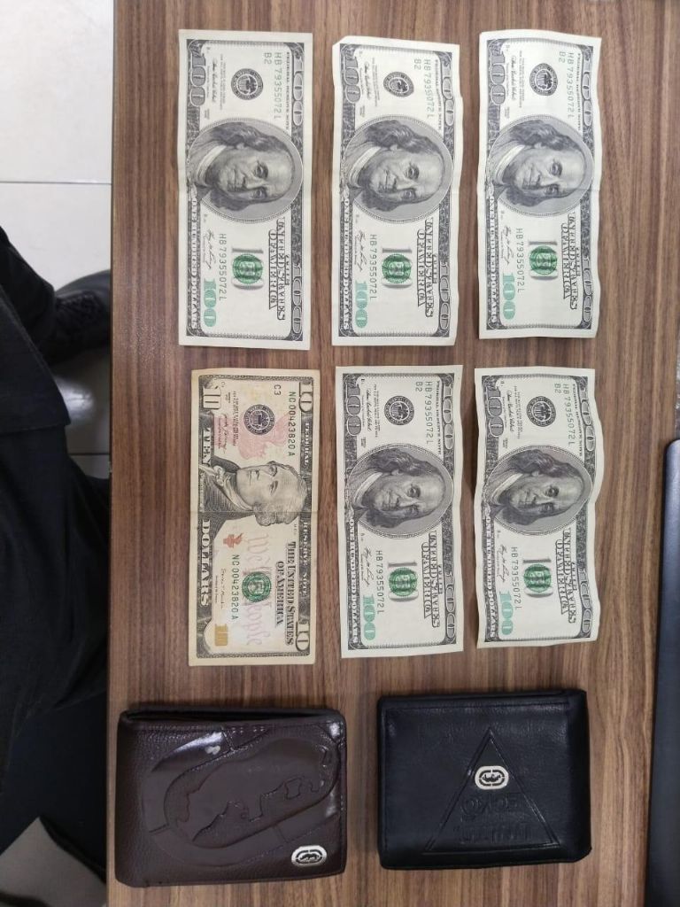 Luego de que el afectado identificó plenamente a los sujetos, los elementos policiales procedieron a su detención, encontrándoles en su persona cinco billetes de la denominación de 100 dólares y otro de 10 dólares.