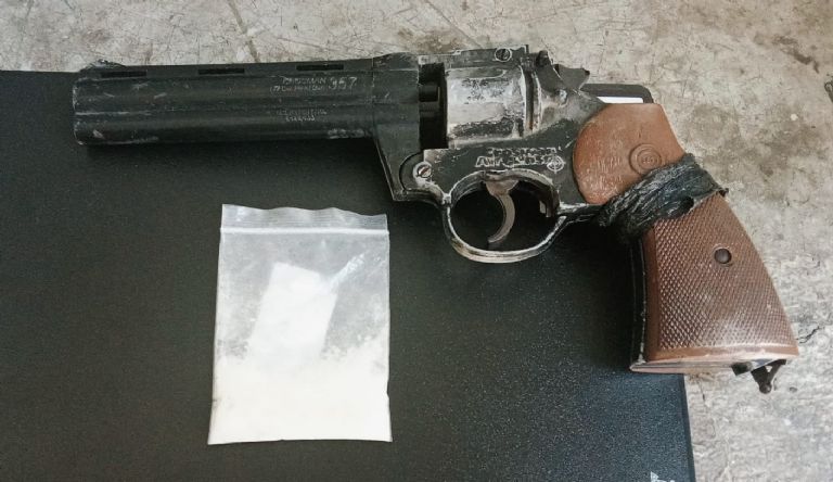 Guadalupe. - Un hombre fue detenido por elementos de la Policía de Guadalupe luego de ser sorprendido en posesión de una réplica de arma de fuego y una dosis de droga, gracias a un reporte ciudadano realizado al número de emergencias 9-1-1.