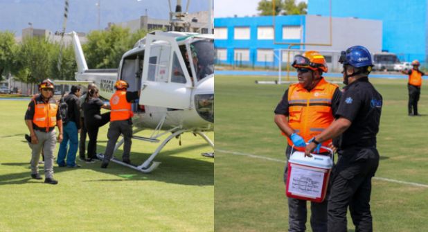 Alrededor de las 13:00 horas (1:00 pm), el helicóptero de la Unidad Estatal de Protección Civil de Nuevo León, despegó hacia la Facultad de Medicina, donde los médicos especialistas trasladaron el órgano.