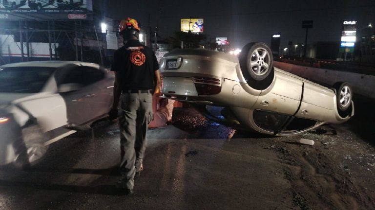 San Nicolás.- Dos accidentes, tipo volcadura, se presentaron durante la madrugada de este domingo en la Avenida Miguel Alemán, en San Nicolás, en uno se presentaron dos personas lesionadas y en el otro el conductor huyó.