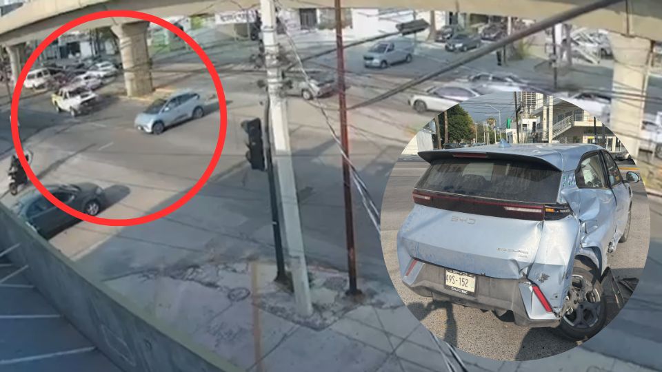 Monterrey. – Un vehículo de la marca BYD se cruzó un semáforo en color rojo y terminó siendo impactado por una patrulla de la Policía de Monterrey.