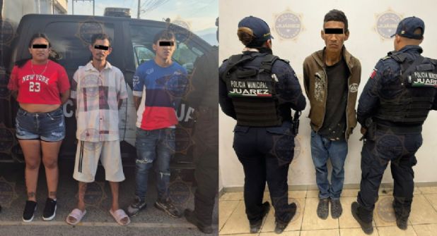Juárez.- Elementos de la Secretaría de Seguridad y Protección Ciudadana de Juárez aseguraron a cuatro personas en distintos puntos del municipio por presunta posesión de drogas, como parte de las acciones permanentes del operativo “Calles en Orden”.