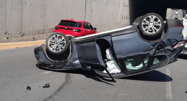 Monterrey.- Un accidente tipo volcadura en el municipio de Monterrey dejó como saldo a una persona lesionada.