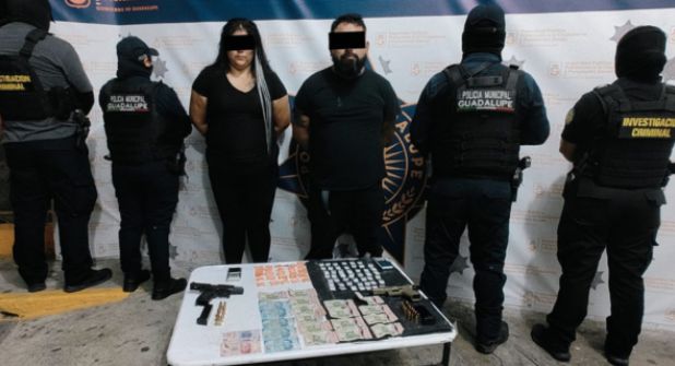 Guadalupe.- Un hombre y una mujer señalados como objetivos prioritarios de un grupo delictivo que opera en la entidad fueron capturados por elementos de la Policía de Guadalupe en un operativo que derivó en el aseguramiento de armas de fuego, dosis de droga y un automóvil de reciente modelo.
