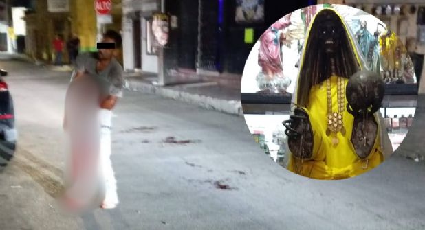 Y es que el individuo, en su afán de apoderarse de la estatuilla, golpeó una ventana del negocio ubicado en la calle Juárez, entre Progreso y 20 de noviembre, lo que ocasionó que un vidrio se le incrustara en la piel y lo hiciera sangrar de manera dramática.