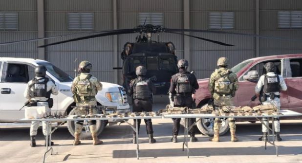 Detienen a 3 hombres en Aramberri con armas, drogas y equipo táctico