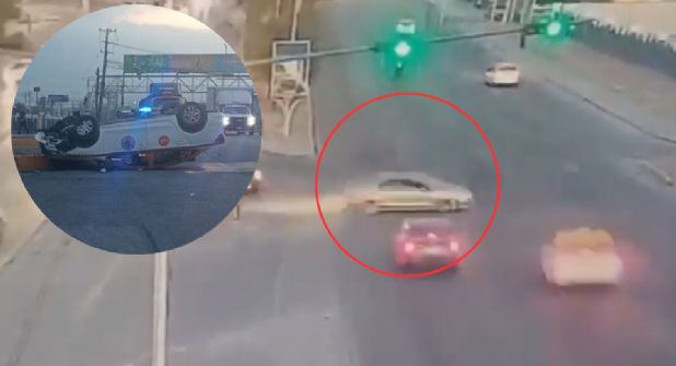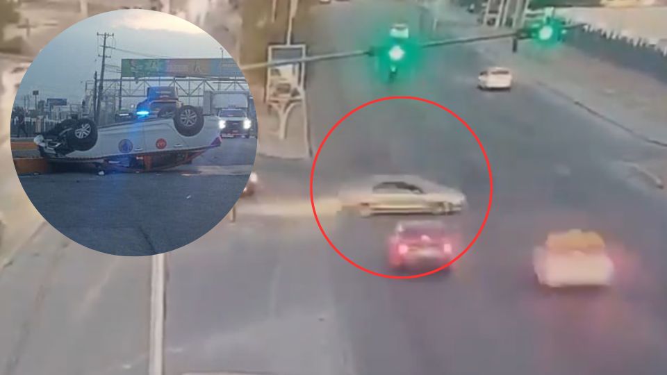 Santa Catarina. – Un automovilista se pasó un semáforo en rojo y terminó por provocar un choque que derivó en la volcadura de un taxi en Atenea y Carretera a Saltillo.