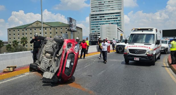 Monterrey. - Una joven de 25 años resultó lesionada este lunes luego de que el vehículo que conducía volcara en la incorporación de la avenida Constitución con Venustiano Carranza, en dirección sur hacia el túnel de la Loma Larga.
