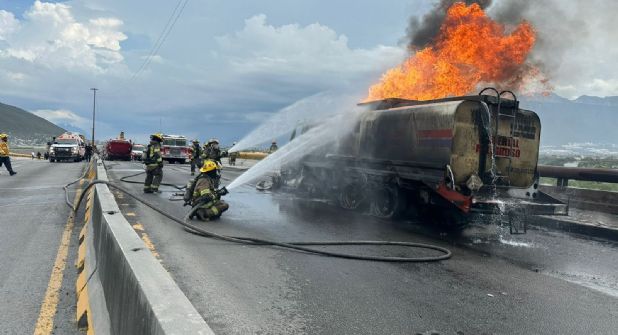 El siniestro comenzó alrededor de las 14:30 horas, donde una unidad que transportaba 20 mil litros de diésel ardió en llamas, generando una columna de humo que fue visible por varios kilómetros por automovilistas y habitantes de la zona. La emergencia fue atendida por personal de Bomberos de Nuevo León, Protección Civil estatal y municipal, así como elementos de la Guardia Nacional y la Policía de Escobedo.