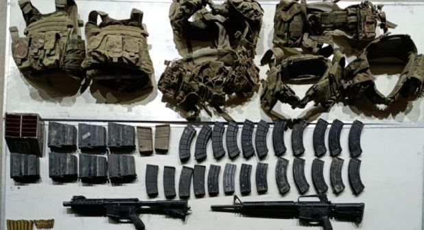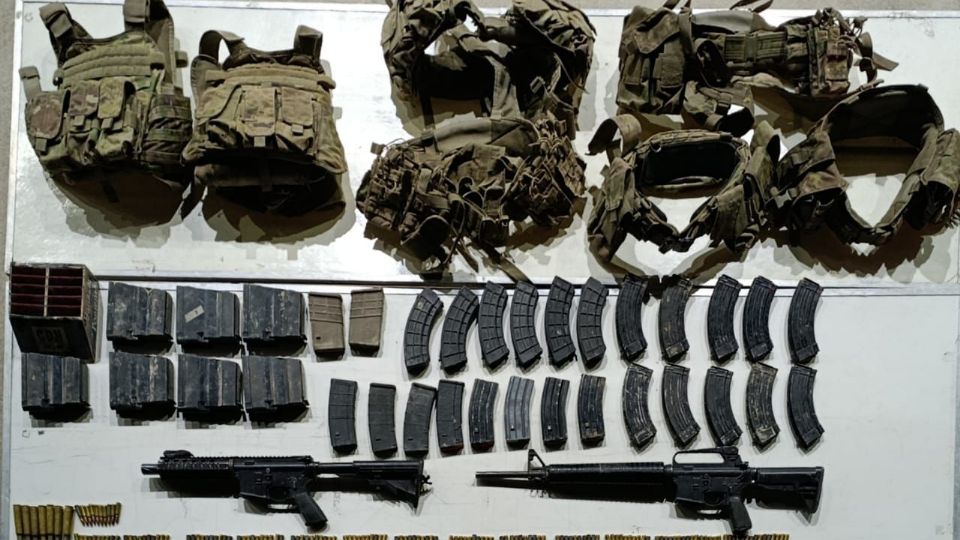 El hallazgo incluyó armas largas, chalecos balísticos, fornituras y decenas de cargadores, algunos de alto poder, comúnmente utilizados por grupos criminales.