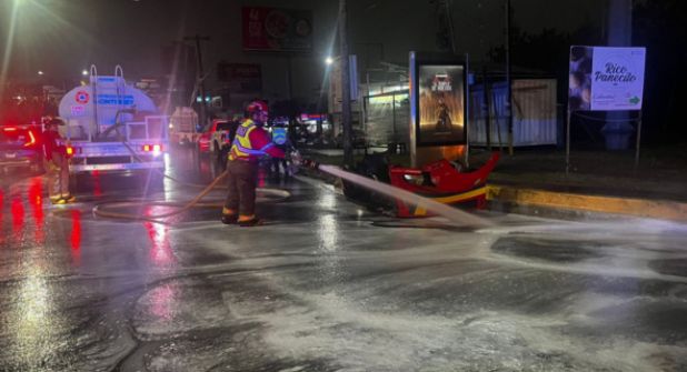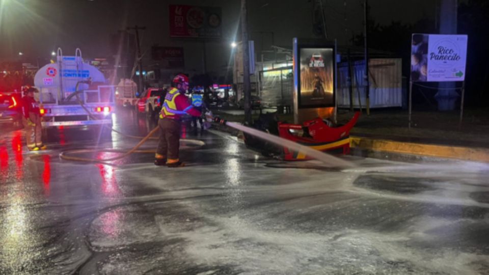 Derivado del impacto, se registró un derrame de aceite y diésel que se extendió aproximadamente 300 metros sobre la carpeta asfáltica, por lo que los cuerpos de auxilio realizaron labores de lavado para eliminar riesgos de derrape y garantizar la seguridad vial.
