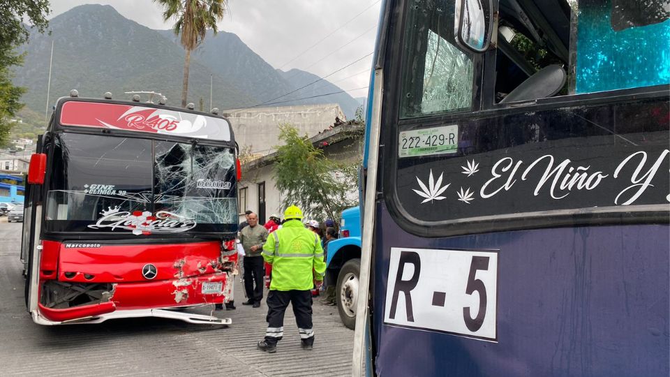 Monterrey. - Un choque entre dos camiones urbanos dejó como saldo cinco personas lesionadas en el municipio de Monterrey.