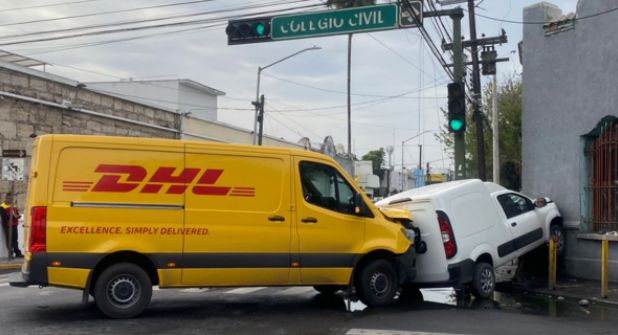De acuerdo con los primeros reportes, una camioneta blanca que circulaba por la calle Isaac Garza se pasó la luz roja del semáforo, por lo que fue impactada por una camioneta amarilla perteneciente a una empresa de envíos exprés, lo que provocó que la unidad blanca se estrellara contra la vivienda ubicada en la esquina del cruce.