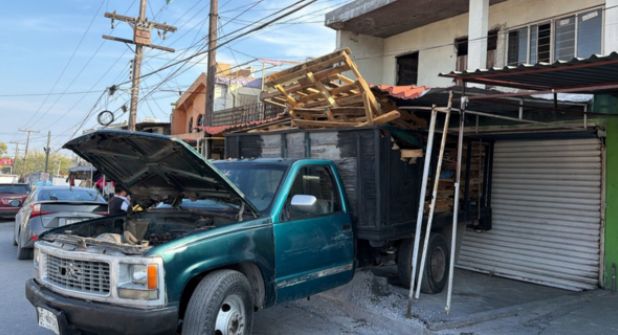 Guadalupe.- Por una presunta falla mecánica, una camioneta cargada con tarimas de madera se estrelló contra la fachada de dos viviendas en el municipio de Guadalupe, sin que se reportaran personas lesionadas.