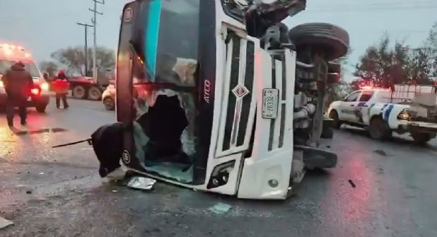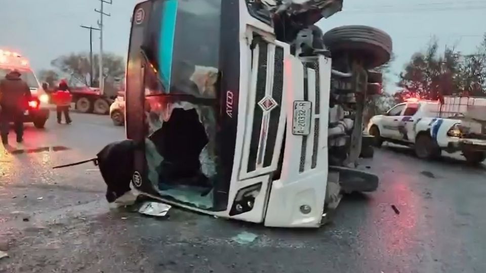 De acuerdo con Protección Civil de Nuevo León, el accidente fue reportado alrededor de las 06:46 horas en la zona de Gran Dinastía, donde un camión de personal sufrió una volcadura por causas que aún no han sido determinadas.