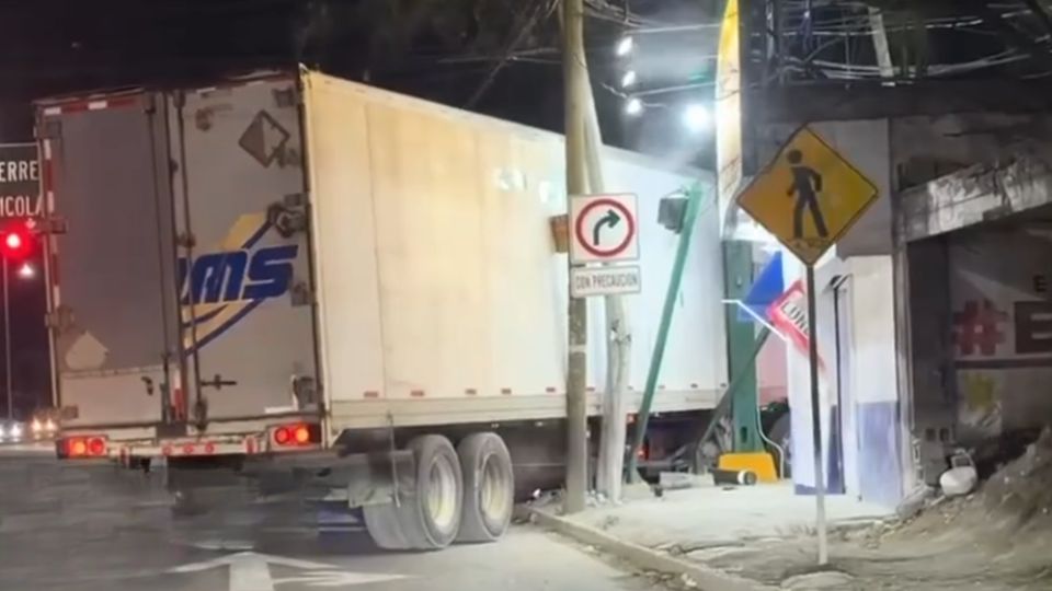 Y es que en su intención de dar vuelta e incorporarse a la avenida Juárez, el hombre no midió las distancias y terminó impactando el tráiler contra dos postes (uno de madera y otro de concreto), así como con un par de señalamientos metálicos.