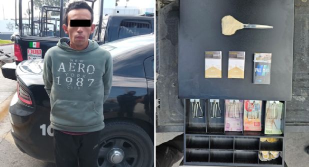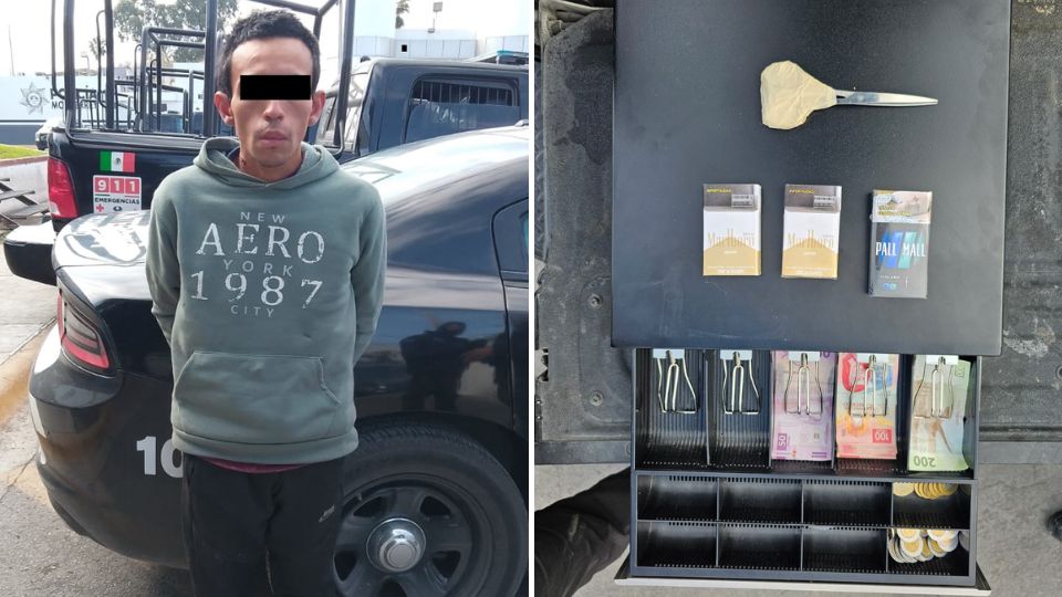 Monterrey. - Un joven de 23 años fue detenido por oficiales de la Policía de Monterrey luego de presuntamente cometer un robo con violencia en una tienda de conveniencia ubicada en la colonia Sarabia, donde habría amenazado a la empleada con unas tijeras para apoderarse de la caja registradora con dinero en efectivo.