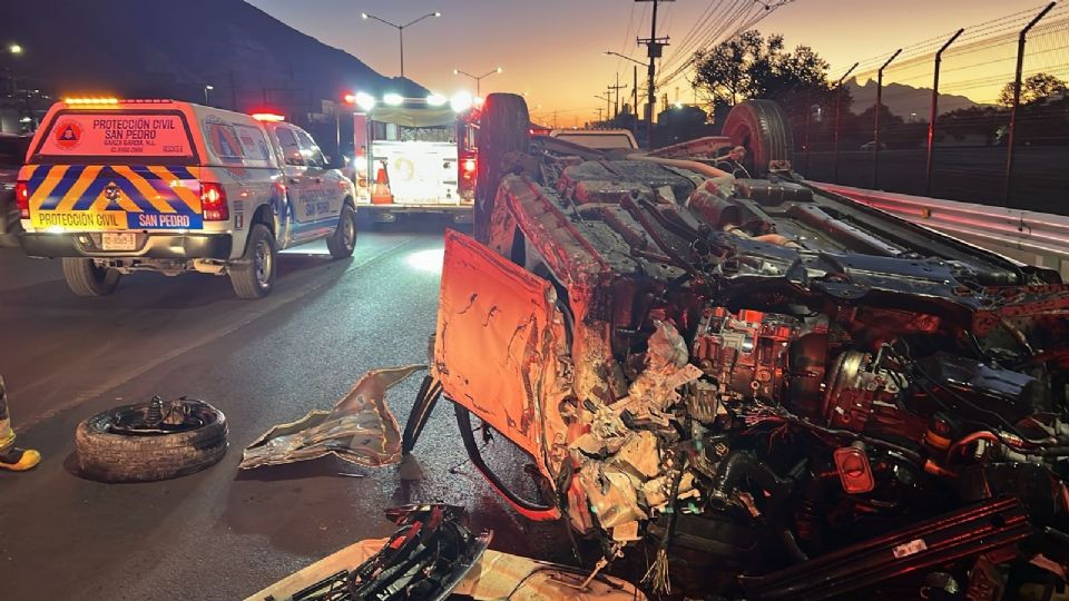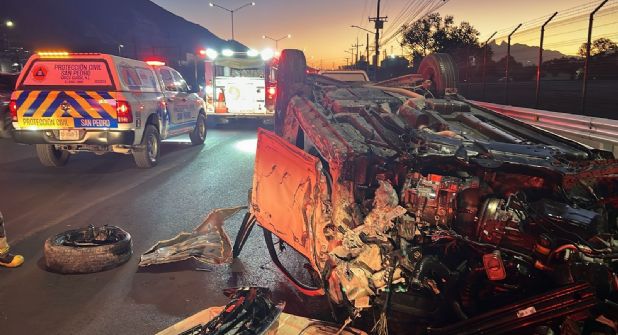 San Pedro.- La volcadura de una camioneta provocó la movilización de cuerpos de auxilio la mañana de este domingo en el municipio de San Pedro Garza García.