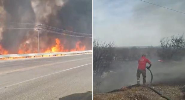 Salinas Victoria.- Un incendio registrado la tarde de este jueves en un predio ubicado a la altura del kilómetro 24 de la carretera a Colombia, en el municipio de Salinas Victoria, movilizó a corporaciones de auxilio y generó momentos de tensión entre automovilistas que transitaban por la zona.