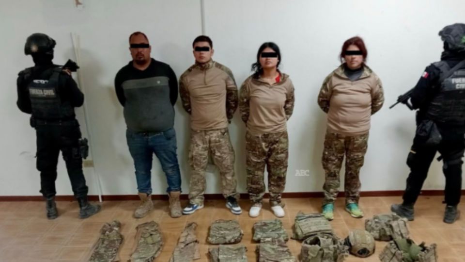 Los detenidos fueron identificados como David N., de 25 años; Jorge M., de 21; Fernanda N., de 19, y Juana N., de 40 años, a quienes se les aseguró un arma larga, un arma corta, 24 cargadores, 254 cartuchos de distintos calibres, un casco táctico, chaleco balístico, fornituras, cuatro teléfonos celulares y el vehículo Jeep Cherokee color rojo.