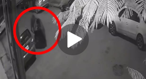 En la grabación, se observa el momento exacto en que el presunto agresor, saca el cuerpo de la víctima, tras asesinarla al interior de su domicilio.
