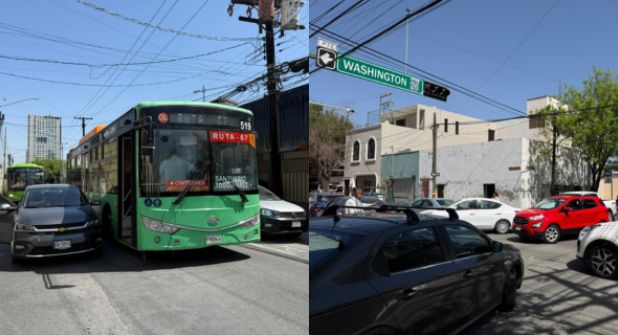 Fue alrededor de las 12:30 de este jueves cuando tuvo lugar este percance vial en el cruce de Washington y Diego de Montemayor, en el centro de Monterrey.