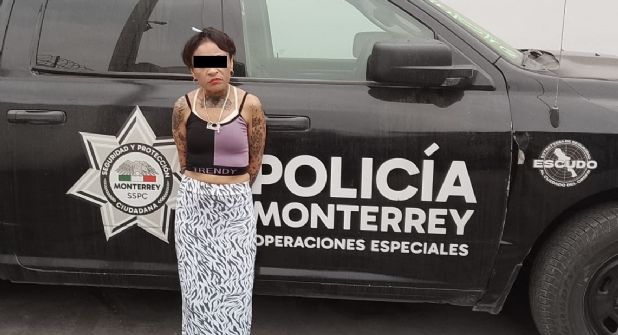La detenida fue identificada como Paulina R., de 38 años de edad, quien fue interceptada a las 18:45 horas en el cruce de Aramberri y Jiménez, en el área del Mesón Estrella, en el centro de Monterrey.