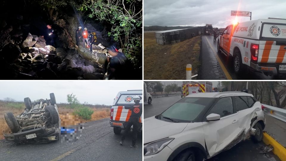 Ese mismo día, en Bustamante, una volcadura cobró la vida de dos personas, y en la autopista Monterrey-Saltillo se reportó otro percance vial con una camioneta volcada.