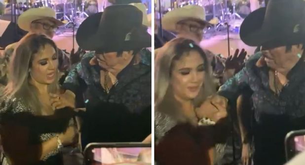 La grabación muestra como la mujer se toma una foto con Lalo Mora y otra persona; posteriormente el músico, que se acercó demasiado durante la fotografía toma sorpresivamente los senos de la joven.