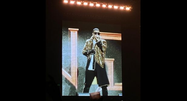 Antes de comenzar el show, fueron unos drones los encargados de entretener al público mientras esperaban a que el cantante saliera a presentarse en el Estadio Mobil Super.