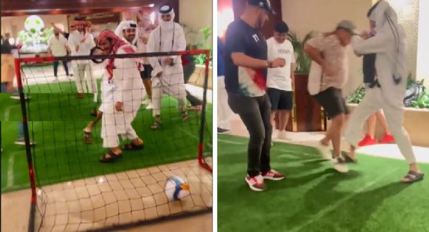 Qatar.- Los mexicanos y su buen humor continúan dando de qué hablar en tierras mundialistas, pues ahora, los aficionados al tri se les vio junto a los qataríes jugando una cascarita en pleno hotel.