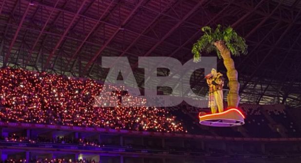 Con una hora y media de retraso, el concierto de Bad Bunny inició exactamente a las 22:30 horas, y tuvo una duración de más de dos horas.