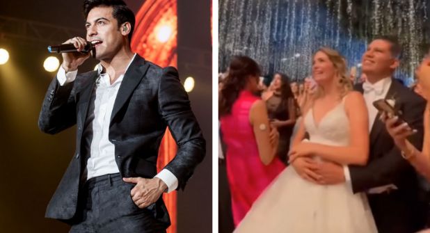 Al finalizar el vals, Carlos Rivera terminó dándoles un pequeño show como regalo de bodas.
