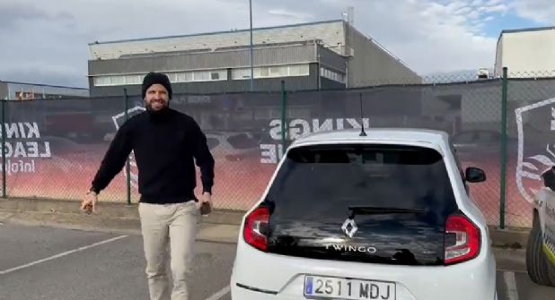 Madrid.- El exfutbolista, Gerard Piqué, llegó al estadio de la Kings League en un auto Twingo en color blanco, al momento de bajar del vehículo, se le pudo ver muy contento.