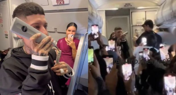 En el video circulado en la plataforma de TikToK, se observa al famoso arriba de un avión cantando completamente gratis algunos de sus mejores éxitos a los presentes, entre ellos algunos fans.